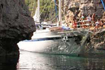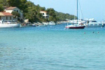 Luka ima dva ulaza s obje strane otočića Hosta. Vis ima redovitu trajektnu vezu sa Splitom; cestom povezan s Komižom.